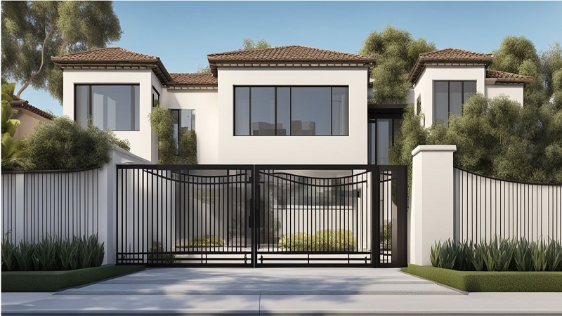 Gate styles include swing, sliding, and bi-folding options. Popular materials are wrought iron, steel, aluminum, and wood. Wrought iron gates provide classic elegance and durability. Steel offers strength and versatility for modern designs. Aluminum is lightweight and rust-resistant, ideal for coastal areas.